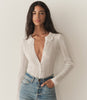 Rendered in 100% organic cotton pointelle, the Martina Cardigan features delicate crochet buttons and a Peter Pan collar adorned with hand-crocheted detailing. Fitted full-length sleeves are gathered at the shoulders for subtle volume. Scallop crochet detailing adorns the sleeve cuffs, center front placket, and slightly cropped hem.
