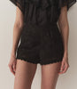 Crafted from soft, lightweight organic cotton and rendered in an allover embroidered eyelet design, the Arbre Short—a favorite of our co-founders, Margaret and Katherine—features an A-line cut, an ultra-high waist with an invisible side zipper and hook-and-eye closure, allover eyelet detailing, and scallop eyelet trim at the hem.