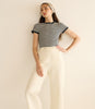 Crafted from a soft blend of regenerative and recycled cotton, the Vivi is our take on a ‘90s baby tee, now rendered in a black-and-white Nantucket Stripe. It features short sleeves, a classic crew neck, and a fitted silhouette.