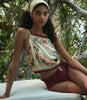 The DÔEN Heirloom Nami Top is a sleeveless open-back silhouette in buttery silk-viscose twill, graced with our hand-drawn Coquillages des Biarritz—a coastal print with intertwining seashells, kelp and coral. Placed borders trim the neckline, hem, and trailing back ties.