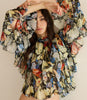 Crafted from floaty silk crinkle chiffon and adorned with our Jardin de Villandry print, the Ninette Top features a breezy silhouette framed by a wide capelet with godets for movement and flared bracelet-length sleeves. The high neckline fastens at the back with covered buttons and a keyhole detail, while picot edging adds a subtle finish to the hems.